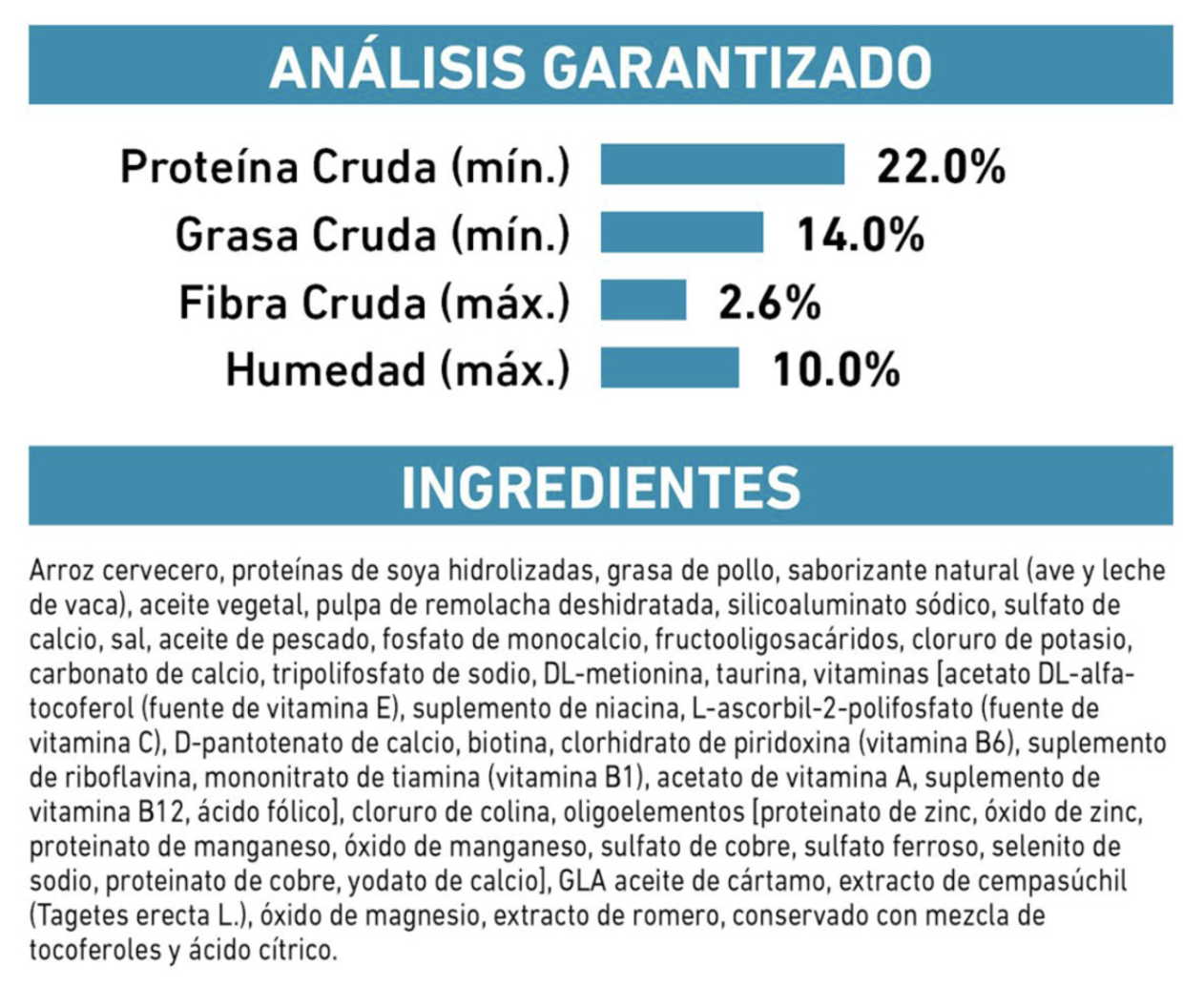 Esta fórmula ayuda a tener una dentición sana gracias a croquetas que tienen un efecto de cepillado mientras se mastican.