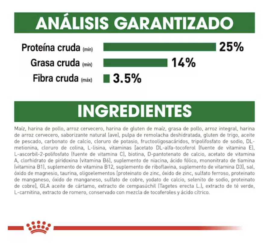 Ayuda a mantener el peso ideal en los perros de razas pequeñas , contiene L-Carnitina que promueve el metabolismo de las grasas
