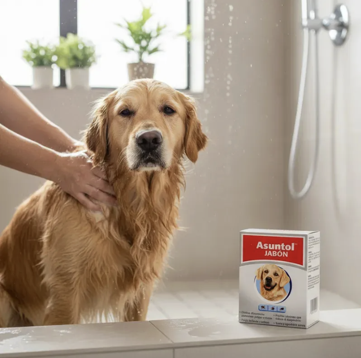 Jabón insecticida y acaricida de uso externo indicado para la erradicación de pulgas, garrapatas y piojos en caninos. Asuntol es un jabón de uso tópico que incluye una jabonera para que no tengas que preocuparte por donde colocarlo, ideal para erradicar y controlar infestaciones por parasitosis externas.