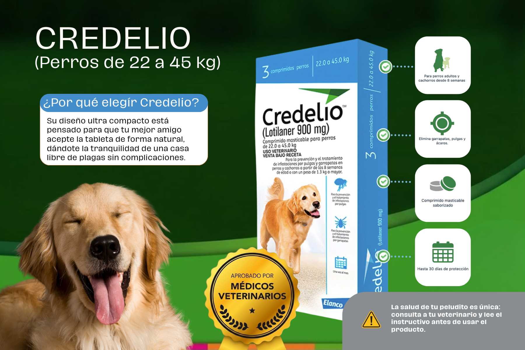 Las tabletas saborizadas de Credelio protege a perros y gatos hasta por un mes de las garrapatas, pulgas y ácaros. Credelio es una opción de fácil aplicación saborizada que le encatará a tu mascota.