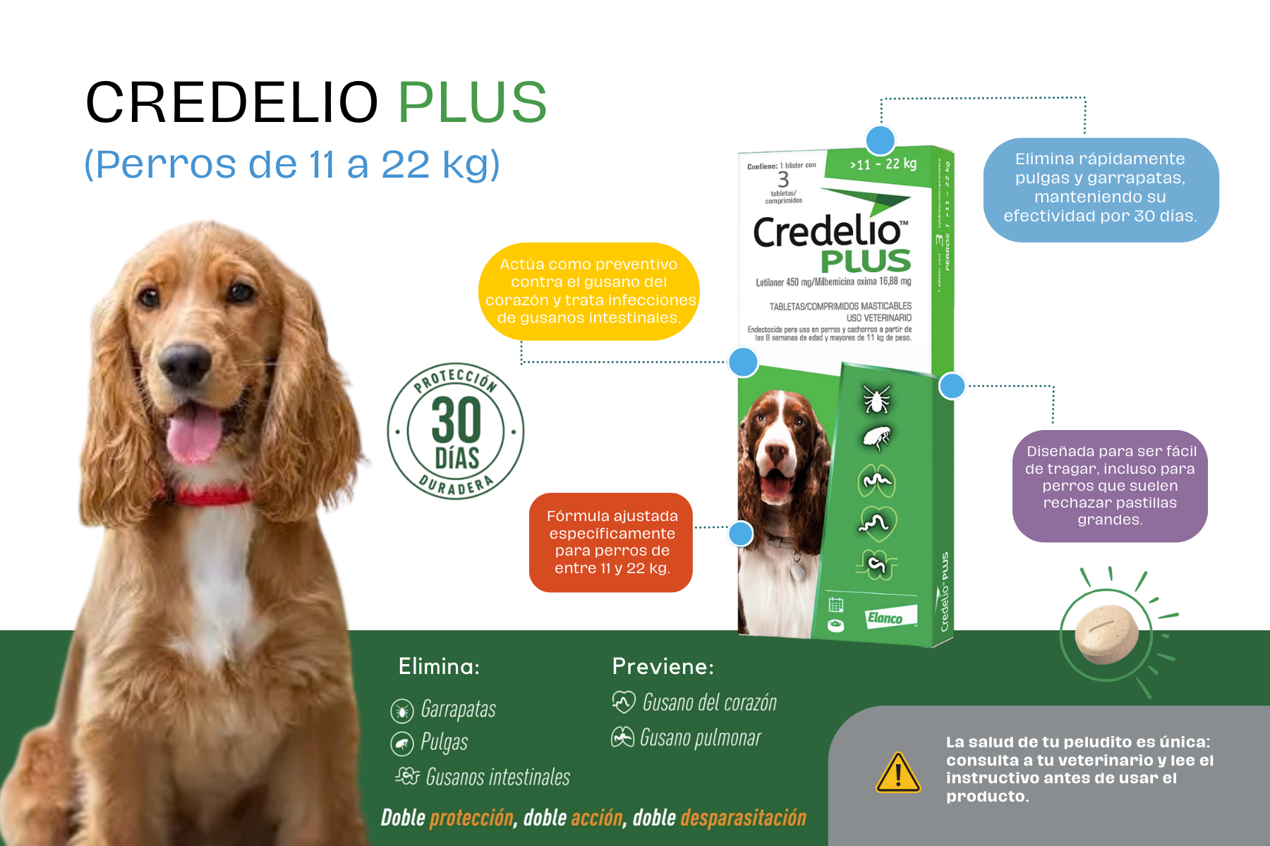 CREDELIO PLUS la tableta para perros y gatos que elimina pulgas, garrapatas, gusanos intestinales y previene gusano del corazón y gusano pulmonar.