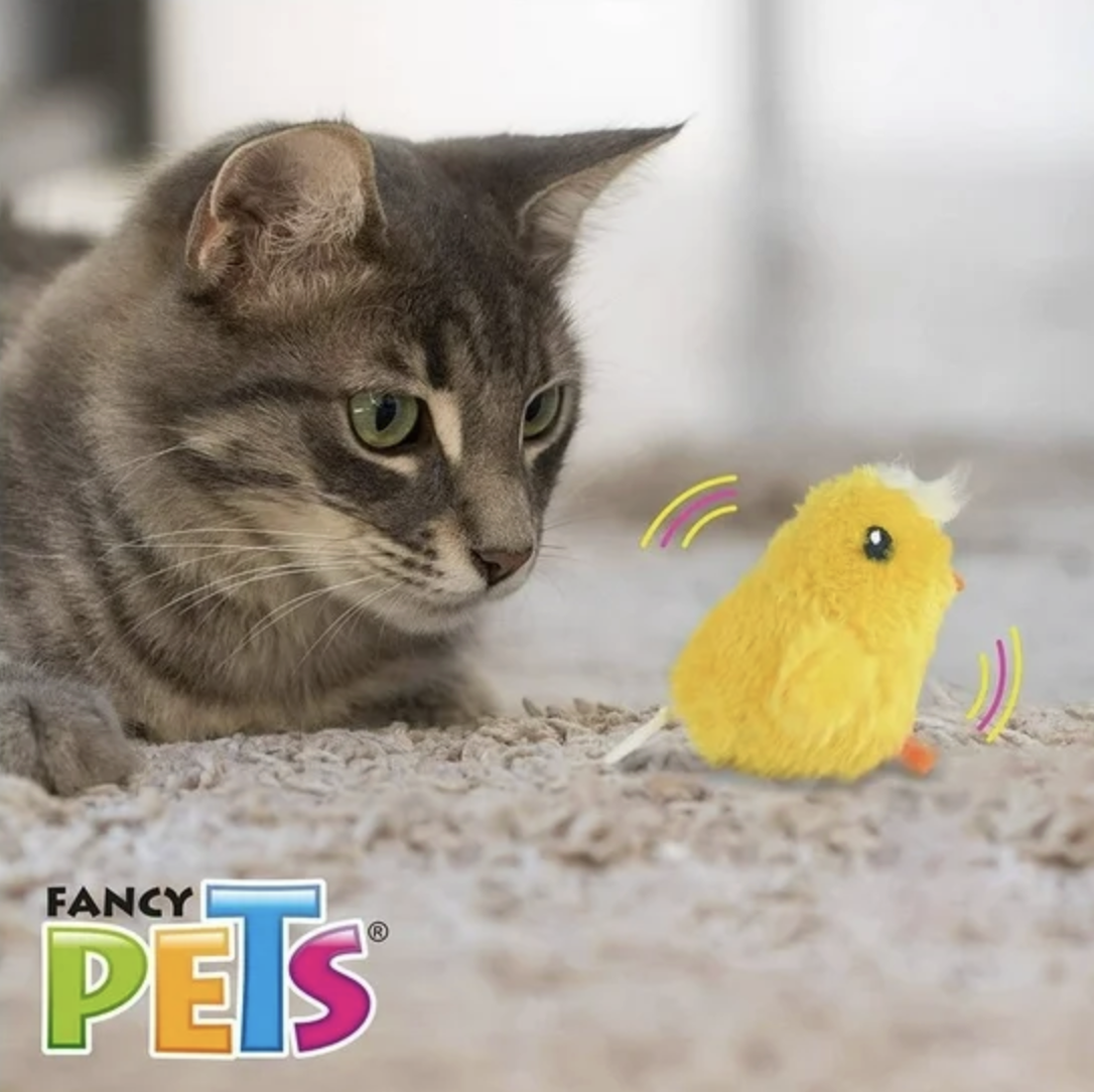 El juguete pollo terrestre con vibración de la linea Catch de Fancy Pets está diseñado para saciar el instinto cazador de tu gato, que como depredador se encuentra siempre al acecho. El movimiento llamará más su atención.