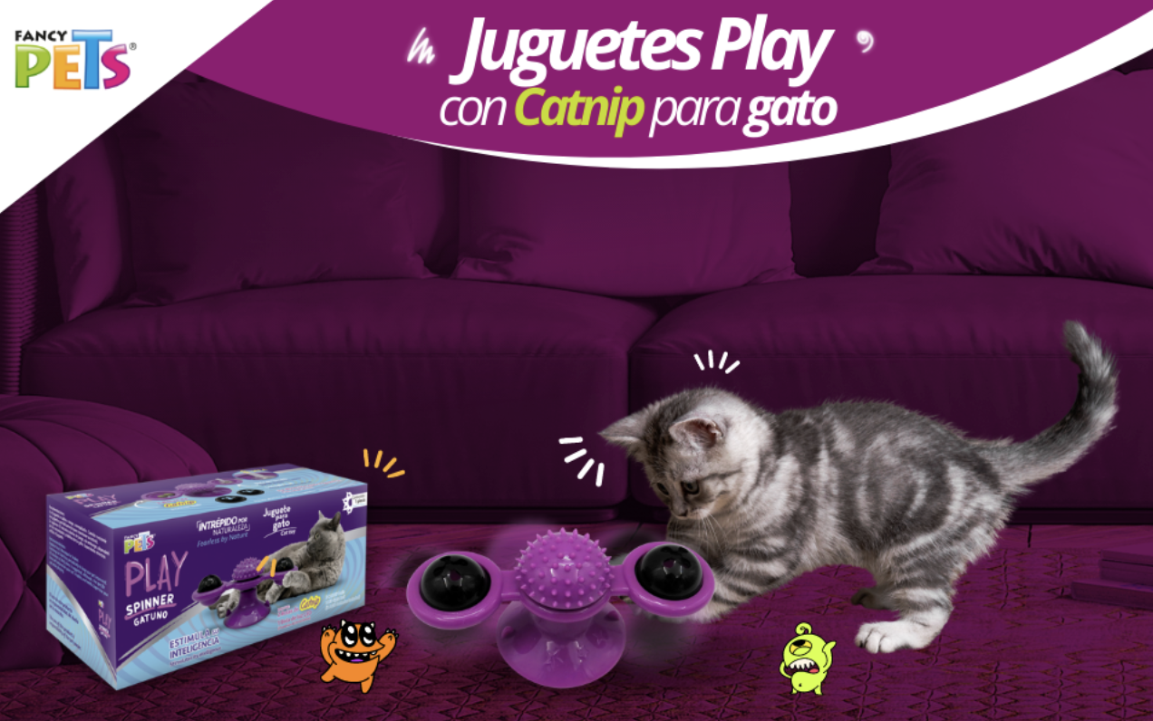 El Spinner gatuno de la línea Play de Fancy Pets está diseñado para estimular el instinto cazador de tu gato y su desarrollo cognitivo, al mismo tiempo que se divierte a través del juego, con elementos que llamarán su atención como el movimiento y las luces del spinner.
