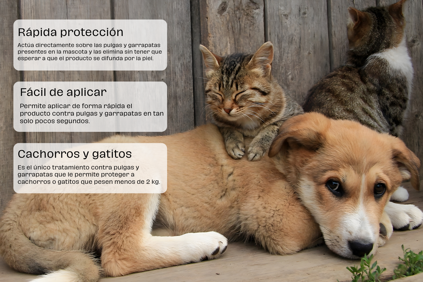 - Puede utiizarse en cachorros y gatitos desde los 2 días de edad