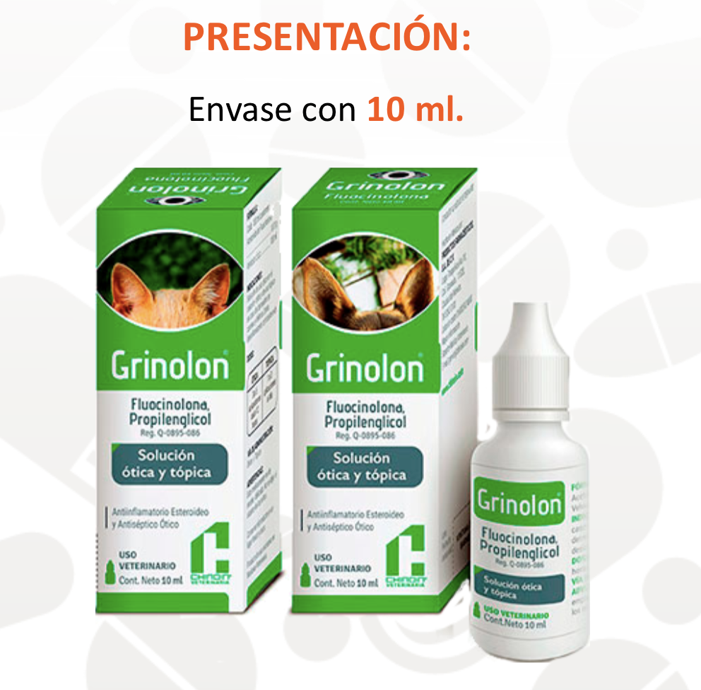 Solución antinflamatoria, antiséptica y antiprurítica indicada para el tratamiento de la otitis aguda y crónica, y en uso tópico en caso de dermatitis localizada en caninos y felinos. Es útil para disminuir las secreciones de las glándulas sebáceas y apocrinas.