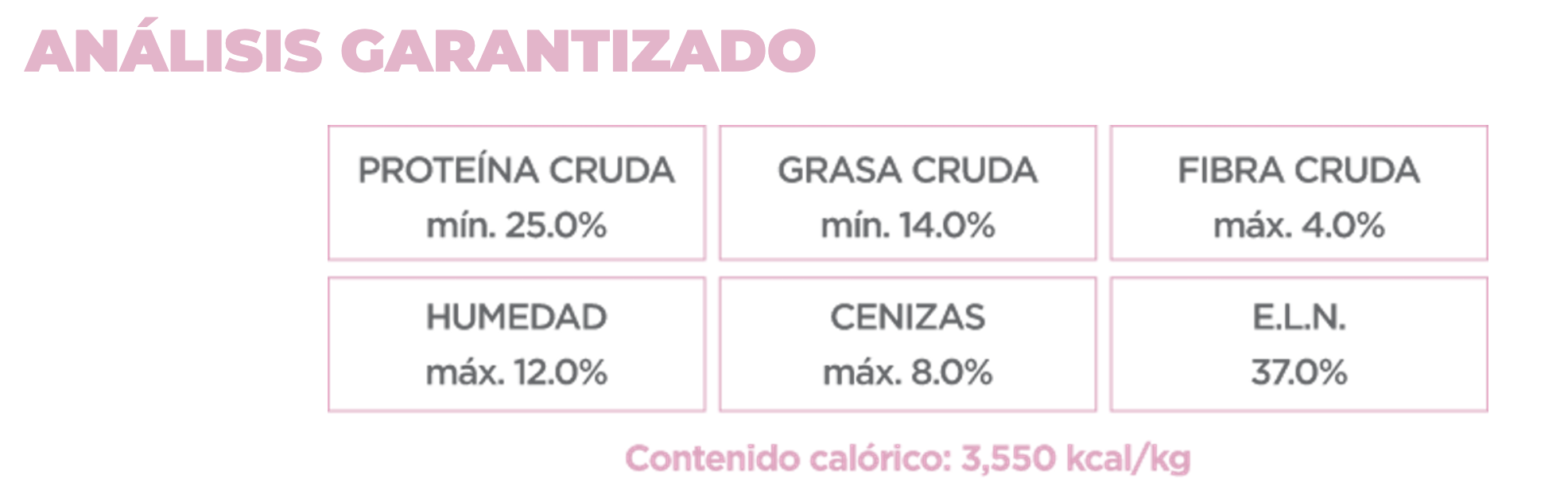 · DIGESTIBILIDAD. Extrusión controlada bajo estándares de calidad internacional que promueve el máximo aprovechamiento de los nutrimentos en la fórmula. Balance nutricional con la mezcla perfecta entre proteínas, grasa, carbohidratos, vitaminas y minerales. Materias primas de calidad consumo humano.