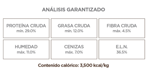 · ALTA DIGESTIBILIDAD. Equilibrio nutricional entre proteínas, grasas, carbohidratos, vitaminas y minerales, ingredientes de la más alta calidad y procesos de alta tecnología que garantizan el máximo uso nutricional.