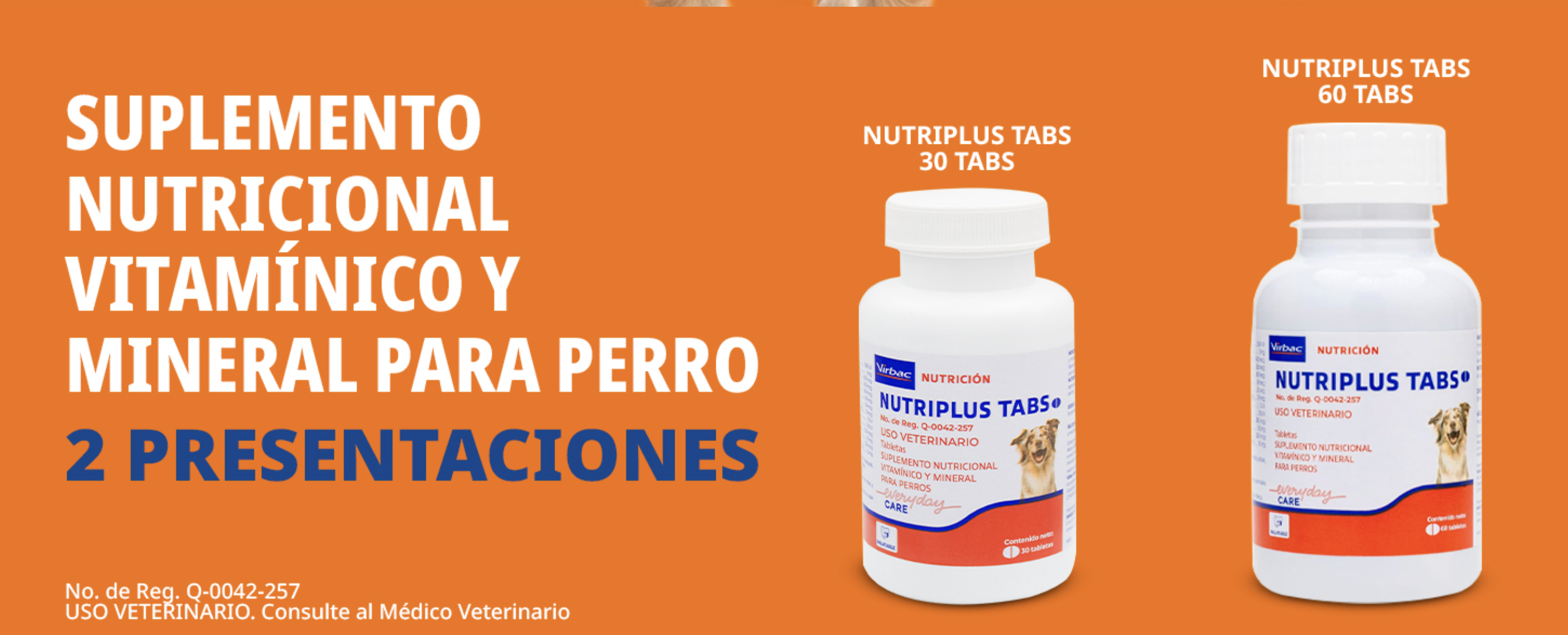 Nutri Plus Tabs es un suplemento nutricional vitamínico y mineral recomendado como complemento en la dieta de los perros hiperactivos, convalecientes, enfermos, geriátricos, hembras gestantes o en lactación, y animales de exposición.