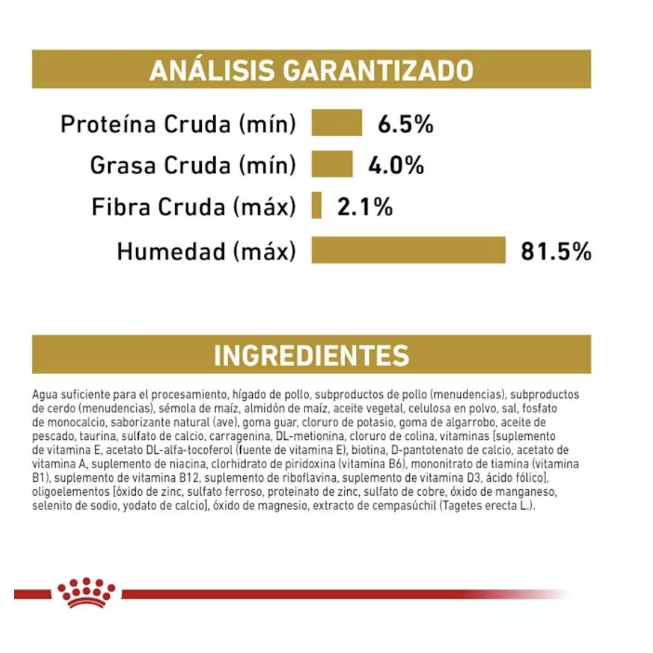Alimento húmedo Royal Canin Urinary SO Moderate Calories Morsels in Gravy para perros adultos en riesgo de desarrollar trastornos de tracto urinario inferior o que ya los padezcan y que poseen o tienden a tener sobrepeso. Ayuda a prevenir la fromación de oxalato de calcio y previene la formación de fosfato de calcio.