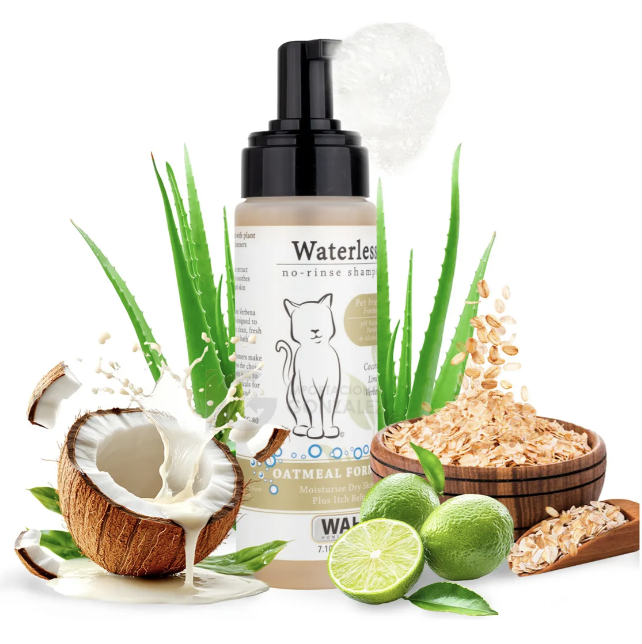 - Limpieza sin agua, espuma sin enjuague que limpia, acondiciona y refresca sin mojar la mascota